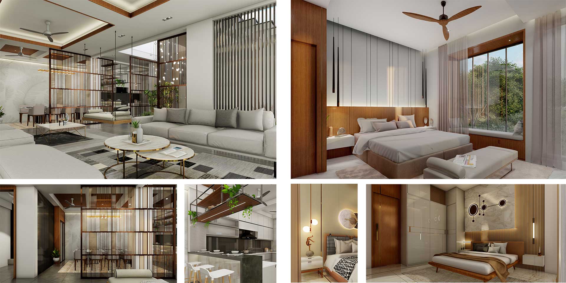 A luxury residence located in the heart of Buldhana district, Chikhli. The house exudes the elegance of mid-century contemporary style blended with the effortless ease of modern design. The apartment features complete marble flooring for all rooms and exotic washroom designs featuring single-tone mosaic tiles. The entrance lobby of the house is designed with a material mix of Deccan black basalt stone and natural wood to give a pleasant inviting vibe to the residents and space users of the family and also to add to the traditional lifestyle of the city. Each and every space of the house is thoughtfully designed in a way to maximize the end user feasibilities and to suit the regular lifestyle of the family . Additionally, adding certain classic components improves the space’s visual appeal while improving its utility.