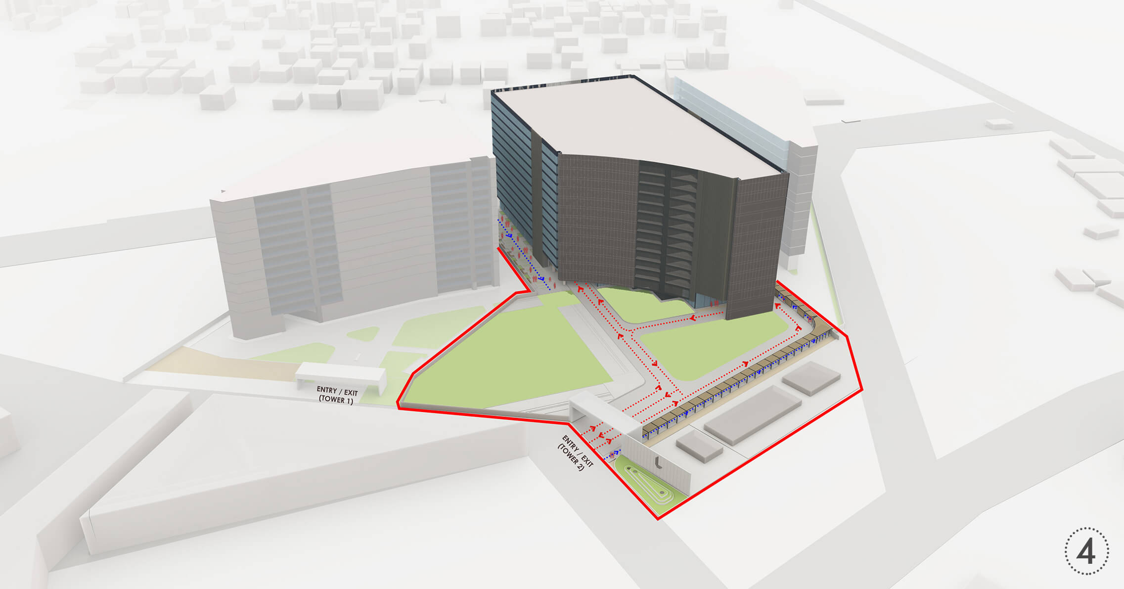 The Sky One Corporate Park is a High-End luxury office building with a built-up area of more than 1 lakh Sq.m. This building will be equipped with state-of-the-art facilities and will be in conjunction with the adjacent existing tower. With over 40% of the site being non developable, the remaining area has been taken into consideration for the Office tower, which incorporates a celebrated double height lobby, a central core to accommodate maximum office spaces on each floor, along with modular spaces for all. A 10 storeyed office tower in the defence locality of Pune has been designed to its maximum potential in all aspects. Planned along a central axis aligned with the prevalent wind direction, the tower also provides glare-free naturally daylight offices through the glass facades on the northern side and helps preventing entry of harsh south sun due to the Dry Granite Stone Cladding on the southern façade with Louvers.