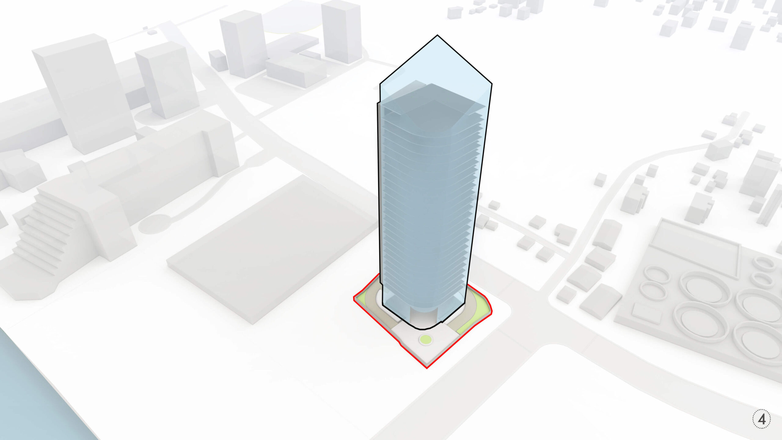The Commercial Tower is located in Lulla Nagar, which is one of the prime and upcoming localities in Pune. The prime location of the site with a few developed and developing lands adjacent to it increases its importance in the locality. The massing and orientation of the building are done with respect to the site and climatic parameters, with western and southern exposure to natural daylight and an interplay of louvered facades to maximize views. The planning of the commercial tower is simple, with an aim to accommodate maximum office and retail spaces along with public parking in one narrow plot with enough exposure on each side.