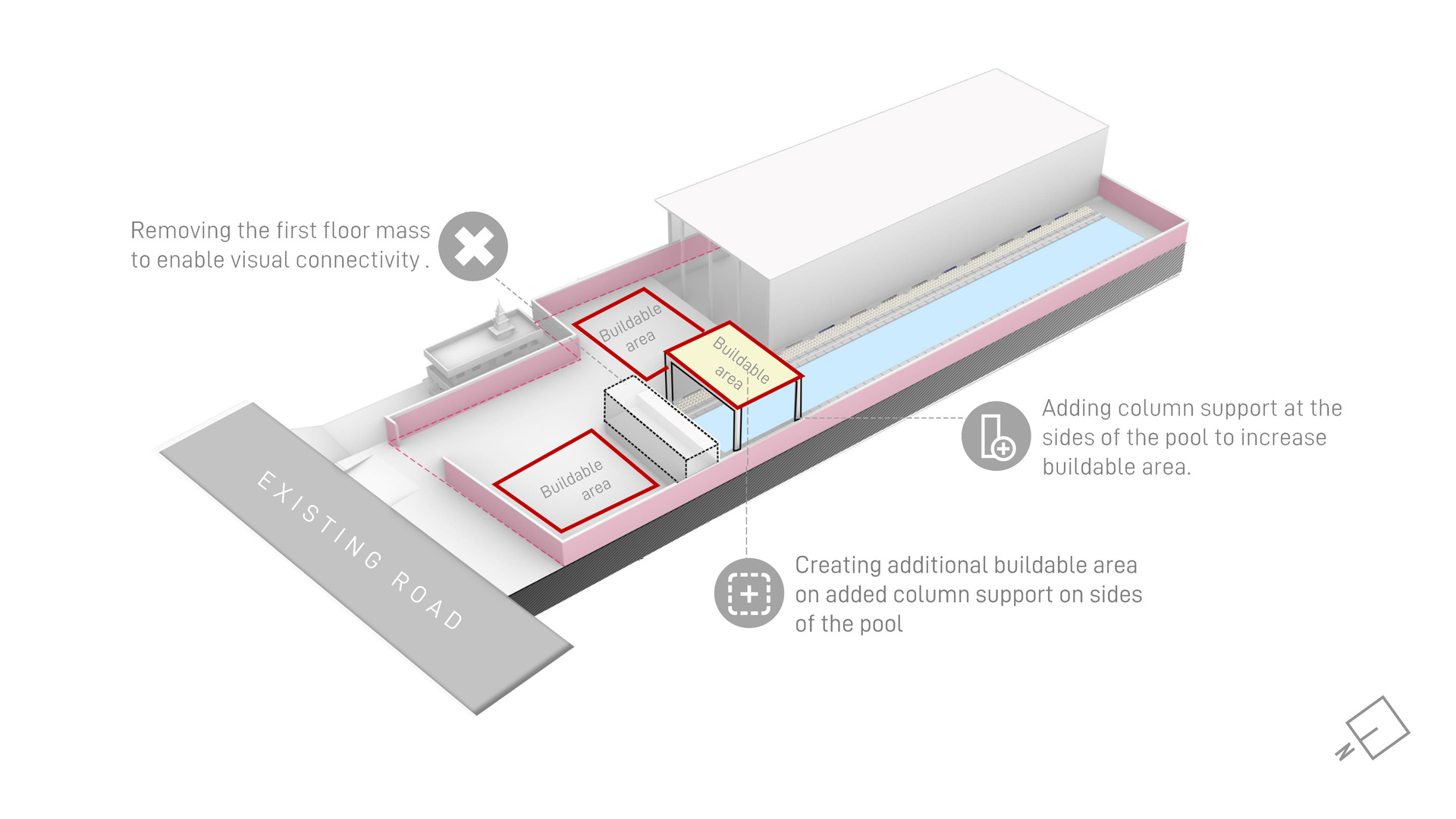 Settled in the residential space of Kolhapur, the Vaastu Compliant residence endeavours towards a subtle design. The client demanded a provision of an Olympic size swimming pool, a large enclosed tennis court and 4 Bedrooms. Another important factor that impacted the design was retaining the old structure. After studying the site conditions, the site boundaries were raised in comparison to the road levels. The tennis court was designed on the lower ground floor along with the swimming pool. The designing of the living room was also planned in such a way that it’s always visually connected with the lower ground floor and the deck on the upper floor. The elevational design was mainly envisaging a balance between the horizontal and vertical planes. The use of perforated screening added to the glamour of the facade and also allowed only partial sunlight to enter. A minimalistic design approach that fabricated a smooth rhythm of axial planes and structural columns with zero compromises on leisure and luxury.