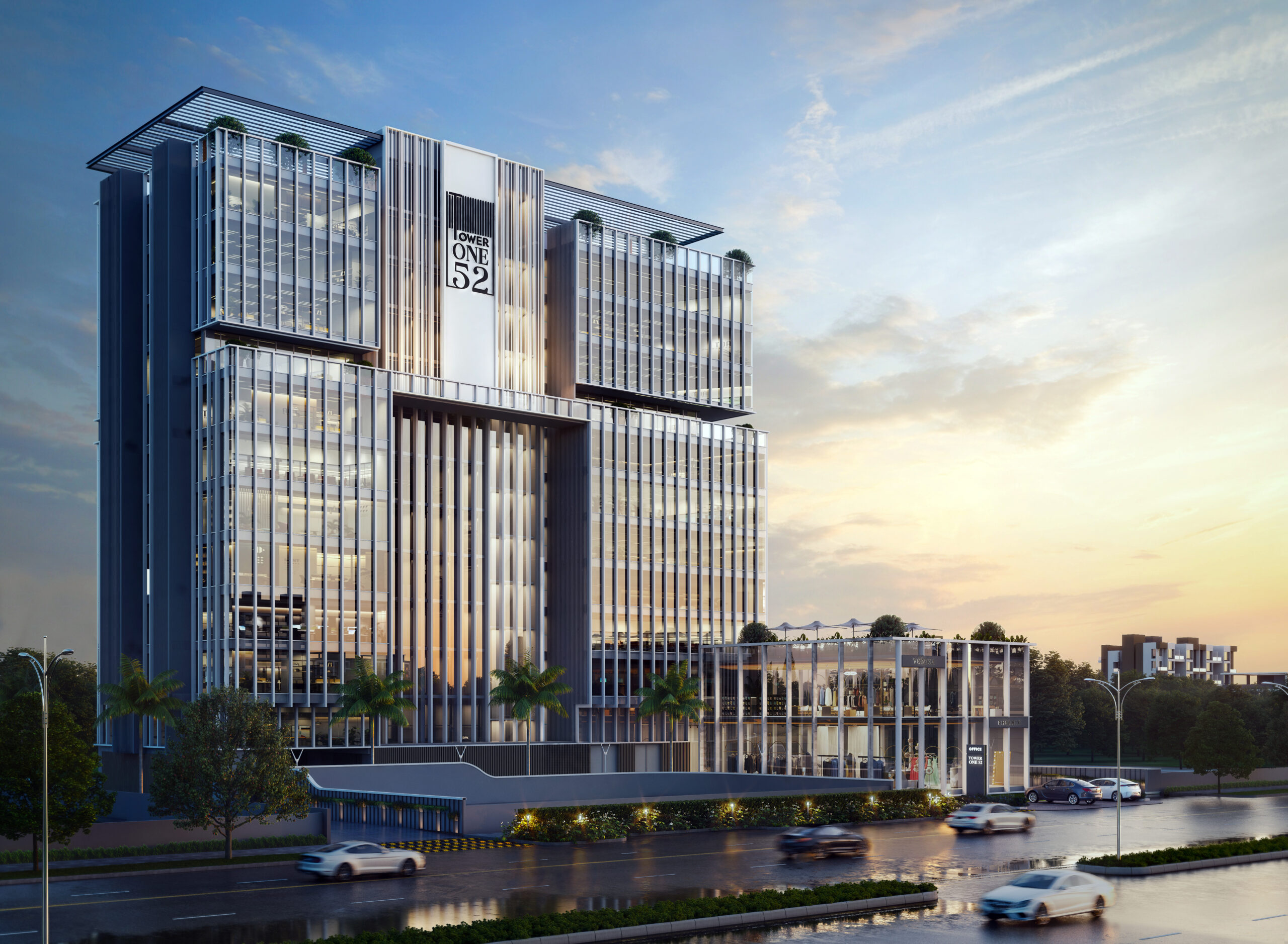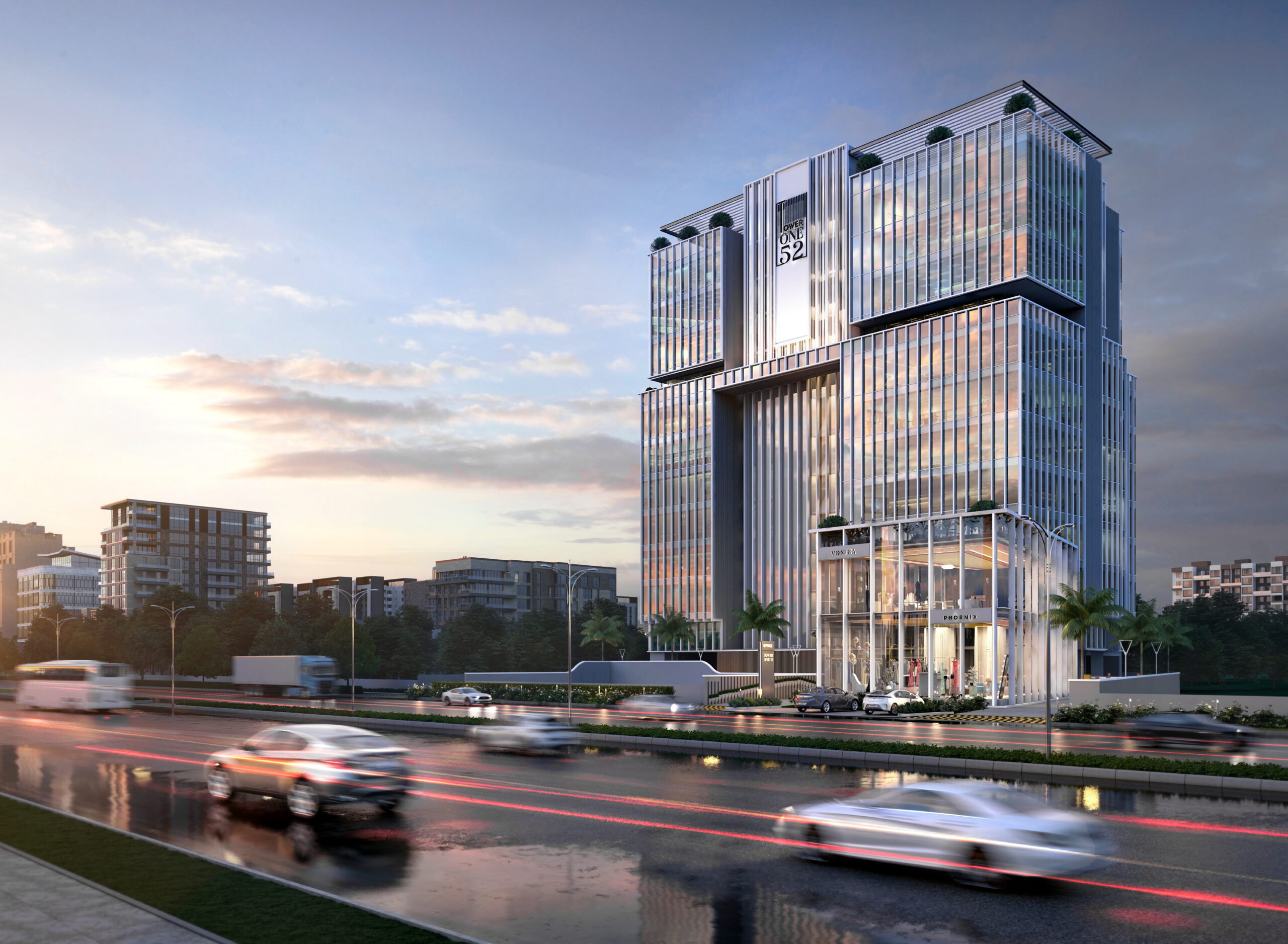 The canal front neighborhood of Hadapsar in Pune now has a new neighbor: ‘TOWER ONE 52’. With an aesthetically pleasing design that properly blends the interior and exterior. “Tower ONE 52” brings the vitality of the suburb, the energy and personality of the street, to all of the building’s public spaces, from the new 15000-square-foot retail featured at the base of the building to the ground floor lobby all the way up to the spectacular green rooftop terrace as restaurant amenities. The design office spaces range in size from 1000 to 5000 square feet, with a 7000+ square feet roof terrace hosting open areas and potential for public events. The facades have a vertical mullion system that creates shadows, depth, and texture at the micro level.